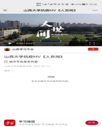 学院党委根据新闻专业特色,广泛动员党员师生拍摄制作反映学校抗疫工作的作品,积极传播正能量,共同做好抗击疫情的正能量宣传者。学院开通山西大学新闻学院视频号。截至4月13日,共发布视频作品7个,其中部分作品被人民日报、新华社、央视新闻、学习强国、山西日报、山西广播电视台等媒体转载报道。2021级研究生创建的《SXUer|请你参与我的春天》共享文档,在朋友圈中接力流传,已被近两万人次查看,收到共计三万余条留言,全校师生在文档中积极分享自己遇到的美好和温暖,相互鼓励,相互支持,清扫疫情带来的阴霾。4月12日该文档被新华社微信公众号进行报道(当日阅读量达65万+),评论写道:“这是一群同学的‘苦中作乐’,让我们看到了乐观的他们、团结的他们、积极的他们。”