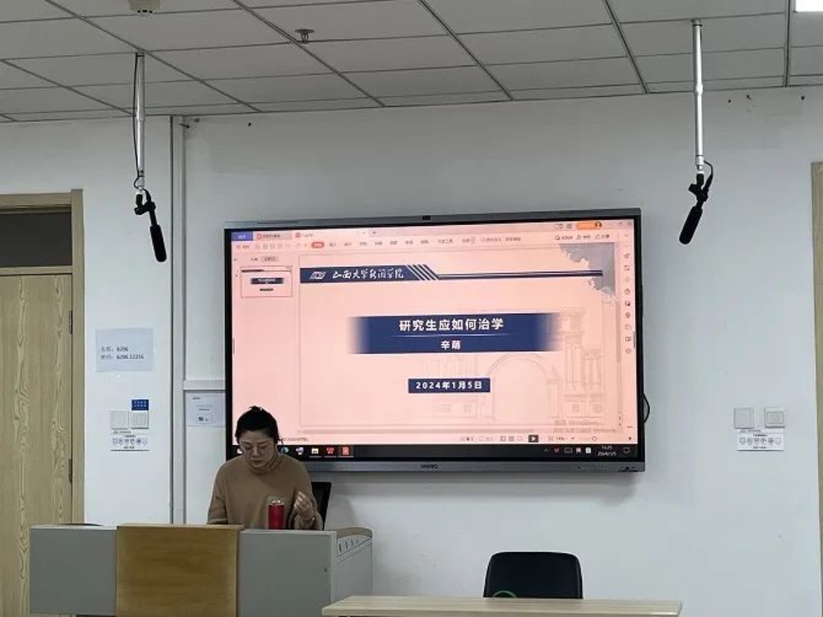 1月5日下午,山西大学新闻学院“导师有约”讲座在商学楼B206教室如约举行。此次讲座以“研究生如何治学”为题展开,辛萌老师针对研究生如何治学,结合自身的学术成长经历,分享了治学是什么、治学的境界、如何治学等方面的经验,为研究生的学习提供了宝贵的建议。