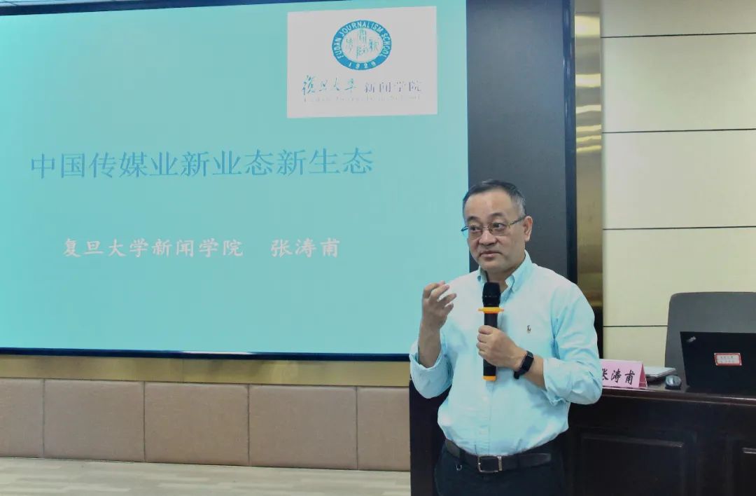2023年9月22日上午,山西大学新闻学院主办的“文瀛·新传讲堂”在商学楼报告厅成功举办。本次讲座邀请复旦大学新闻学院院长张涛甫教授为主讲人,讲座主题为“中国传媒业新业态新生态”。新闻学院教授李雪峰担任主持人,新闻学院师生参加讲座。