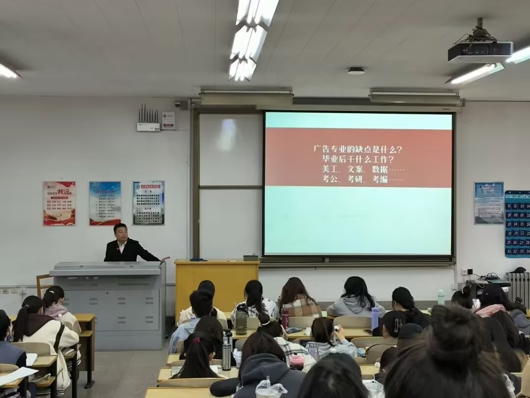 武杰老师介绍了广告学专业的特色和本质以及广告学的未来发展趋势,并对现阶段广告学专业与市场应用需求的关系进行分析介绍,将自己对广告学专业的理解分享给同学们,加深了同学们对广告学专业的理解和认识。