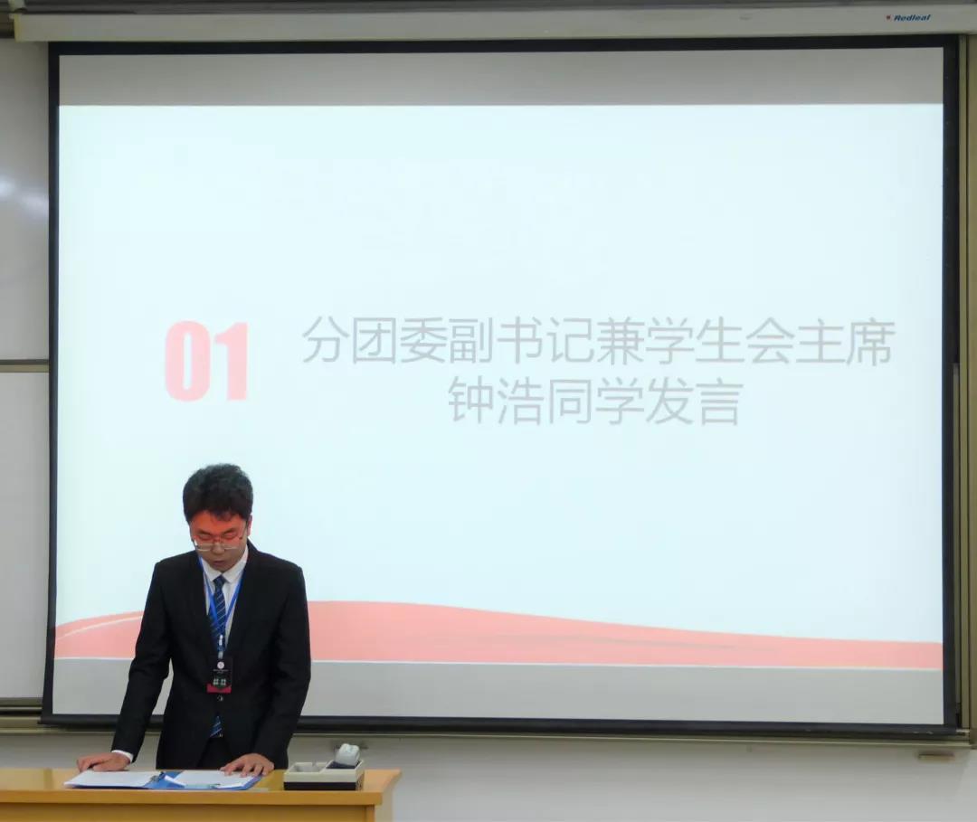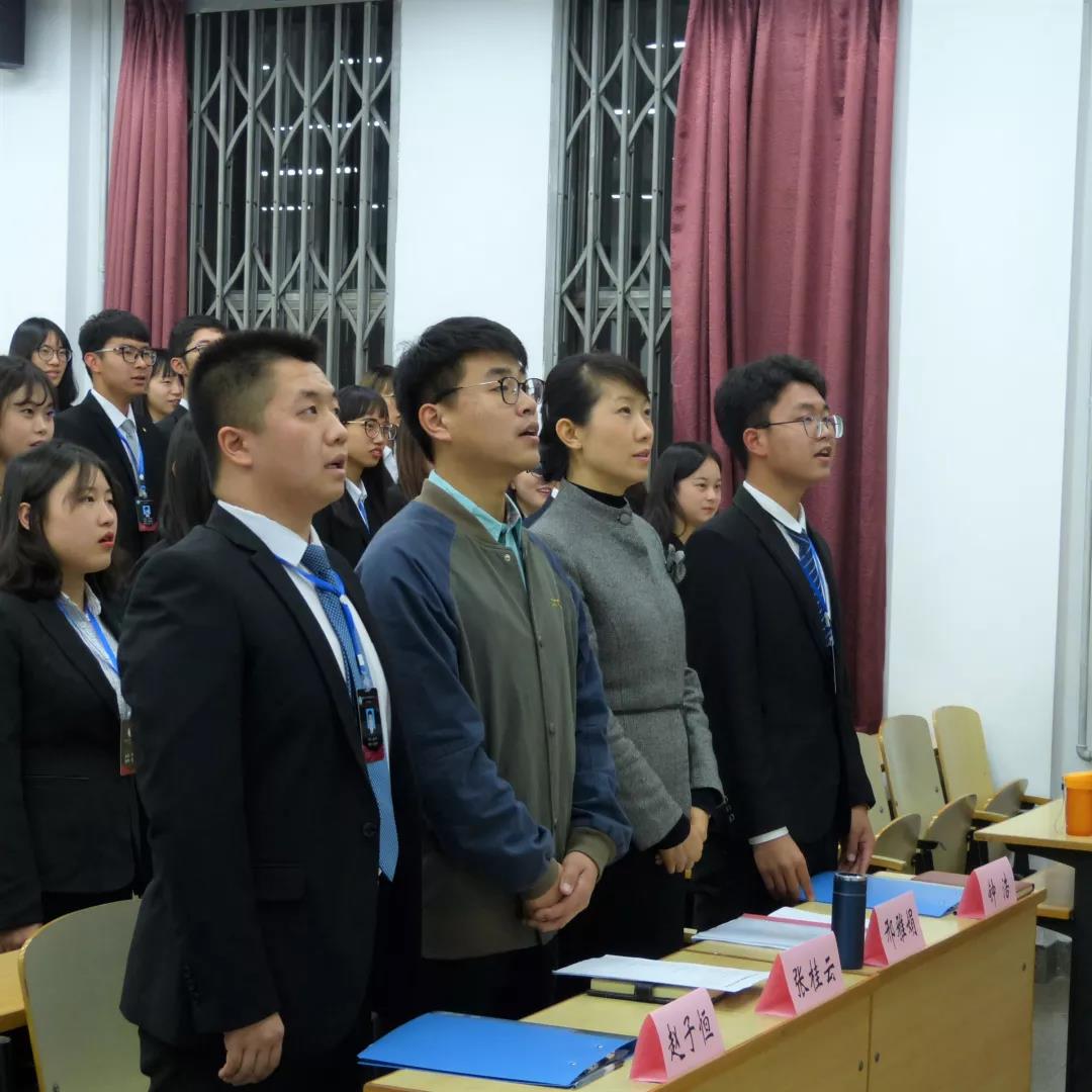 大会第一项,与会老师及学生会全体成员起立奏唱共青团员团歌《光荣啊中国共青团》。悠扬的团歌和同学们朝气蓬勃的声音,表现出新闻学院学生会的昂扬向上的自信和活力。