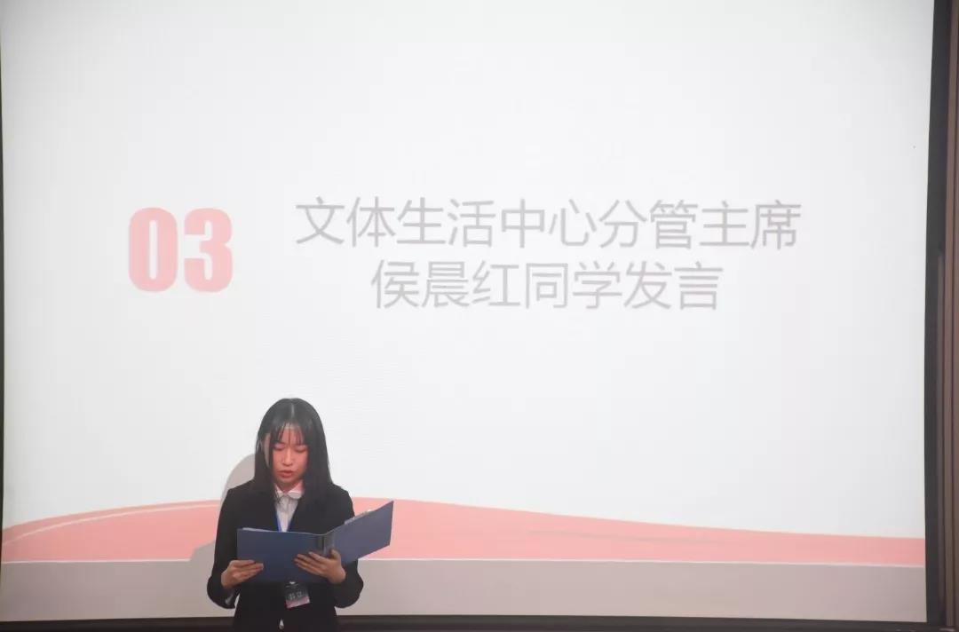 大会第三项,学生会主席团成员分别发言。