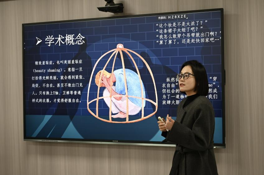 比赛过程中,14位参赛选手热情洋溢、自信大方,借助精美的PPT和生动有趣的视频,从社会热点现象入手并运用经典理论进行分析,从不同角度向观众展示了他们的演讲主题。
