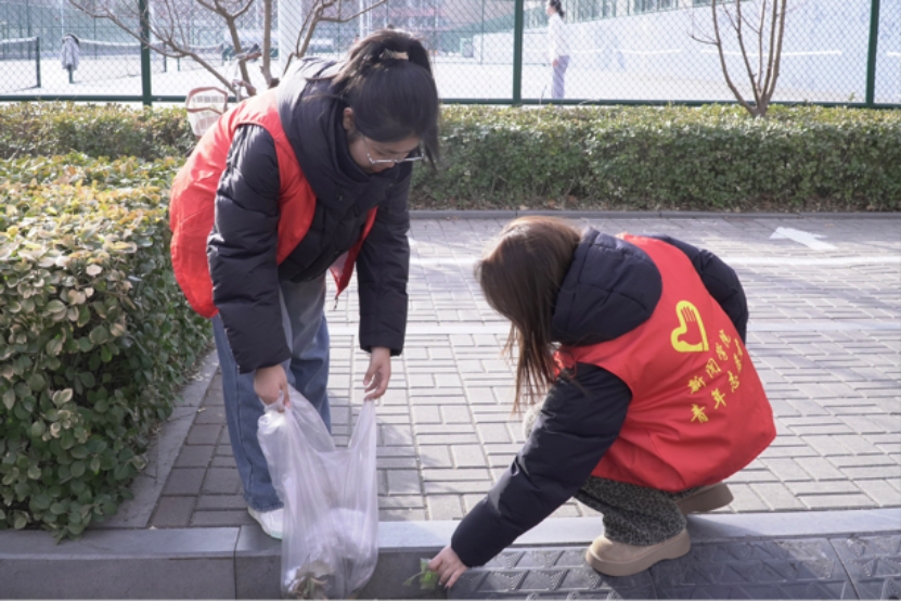 春光和熙,微风轻拂,校园内出现俯身捡拾的身影。为响应“3·5”雷锋日的号召,3月5日和6日,新闻学院青年志愿者协会在午后组织开展了校园美化活动。